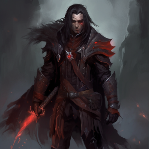 male dark haired with thick beard not long elf rogue thief, dungeon and dragons 5e, 2 different colored eys dark fantasy , knives on armor, full body shot, stealth pose, night, 4k, vivid, 4k ultra detailed, 4k cinematic, 4k hyper detailed, 4k ultra realistic, 4k hyper realistic, 4k photorealistic, --ar 16:9 --v 6.1