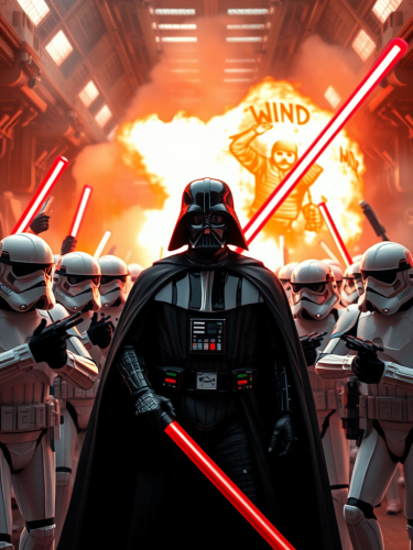 Draw a picture of Darth Vader with a Santa Claus hat on his head, and instead of holding a lightsaber, he is holding a candy cane --v 5.0