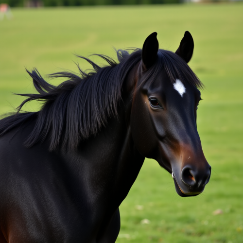 A realistic image of a horse with a dark and mystical appearance. The horse's body is completely black, like a shadow, with no visible details except for its stark, white glowing eyes. It has a flowing white mane that contrasts against its dark body, giving it an ethereal look. The horse's hooves are also glowing white, emitting a soft, eerie light. A white mist emanates slowly from its hooves, adding a ghostly and supernatural effect. The background is dark, enhancing the glowing features and the shadow-like body of the horse.