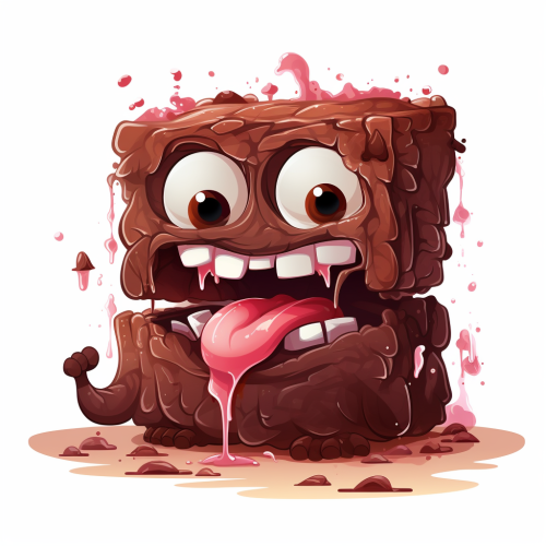 2d cartoon MEAT DRESSED WITH CHOCOLATE WITH EYES, SMILES white background