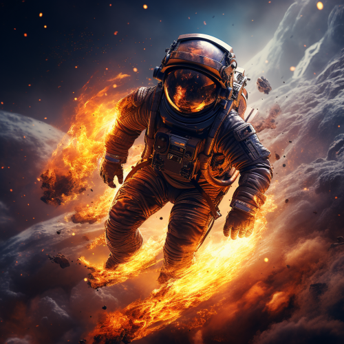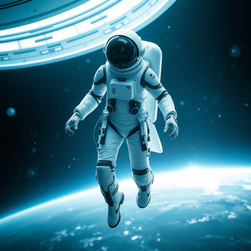 Hyper realistic photograph for news media of astronaut flying in space, lines wave, neon fluorescent colors, high definition, 8K, cosmos exploration, zero gravity, Earth view, spacewalk, space suit technology, cosmic vastness, human achievement in space exploration, the beauty of our planet from afar, technological marvel of space suits, the solitude of space, the thrill of the unknown, in the style of michelangelo aesthetic style --s 900 --v 6.0