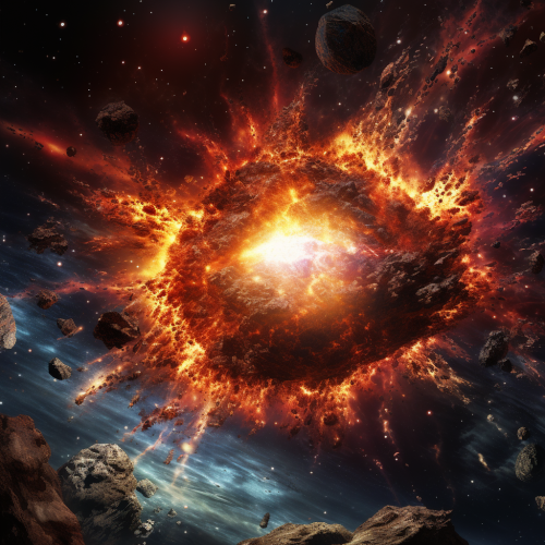 a dark asteroid field. a glowing blue ice asteroid.