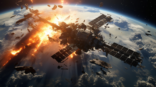 astronaut in open space, repairing space station, Earth visible in the background, high resolution, 16:9 aspect ratio, cinematic effects