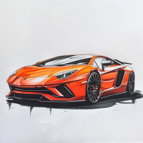 A logo made from the side proffile of a modified lamborghini huracam, Lineal icon, vector, minimalism, adobe ux, figma, ux, ui, outline icon, simple color, flat color, black on white,, highly detailed