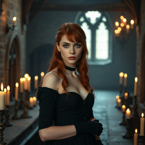 realistic medieval fantasy princess, tall woman in her early twenties, fair skin, blue eyes, long fiery red hair, rounded features, heart shaped face, inside regal royal palace, HD