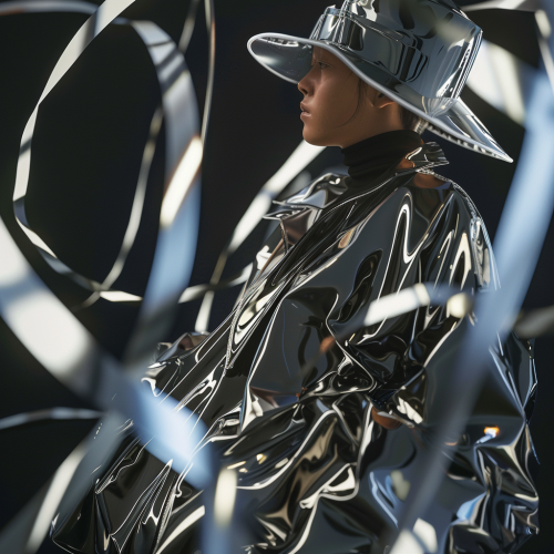 abstract 3d elements and shapes, modelo de ropa , capturada con una cámara Sony α7 III, toma cinematográfica para una campaña de moda, modelo, estilo Balenciaga. La imagen, rodada en alta resolución y relación de aspecto 16:9, impresionante realismo luz clara dramática, grano de pelÃcula, Leica 50mm, 8k 3d hiperrealista microdetalles iluminación cinematográfica elegancia épica simétrica detallada iluminación estilo Caravaggio --style raw --v 6.0