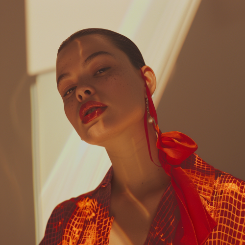 fashion campaign, American flat model, captured with a Sony α7 III camera, equipped with an 85mm lens at an aperture of F 1.2, cinematic shot for a fashion campaign, model, Balenciaga style. The image, shot in high resolution and 16:9 aspect ratio, stunning realism dramatic clear light, film grain, Leica 50mm, 8k 3d hyper-realistic micro-detail cinematic elegance epic symmetrical symmetrical symmetrical detailed Caravaggio-style lighting --style raw --v 6.0