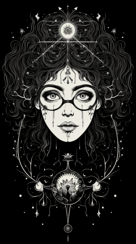 glases, Tarot card, magical symbol, natural witch, hand-drawn stylistics, isoteric symbol, little evil, old school tattoo, witch dna,art style, --ar 9:16