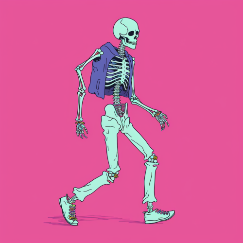 A vintage 1980s rock and metal t-shirt design featuring a side profile of a skeleton paddling away on a vividly decorated paddleboard across the shimmering surface of Lake Mead, a vast desert lake surrounded by rugged, arid cliffs and rocky shorelines. The skeleton, wearing a tattered bandana and aviator sunglasses, leans forward with the paddle gripped tightly, creating ripples in the water. The paddleboard stands out with neon flames, skulls, and lightning bolts in bright pink, blue, and yellow. The setting sun casts deep orange and purple tones across the lake, with stark, jagged desert mountains silhouetted against the sky. Styled as a retro screen-print, the artwork uses heavy black outlines and intense neon colors that reflect the rebellious spirit of 1980s rock and metal culture. The skeleton's side profile is dynamic and sharply detailed, and the bright, graphic elements of the paddleboard create a bold contrast against the muted desert landscape. Jagged lines and electrified edges frame the design, adding an extra punch of visual intensity. The lighting features the blazing glow of a desert sunset, with dramatic light rays piercing through the sparse clouds, highlighting the skeleton and paddleboard while casting long shadows across the lake’s surface. The scene captures a blend of warm and cool tones, creating a dynamic and energetic composition. --ar 16:9 --s 300 --v 5.0