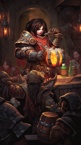 dungeons and dragons, male human paladin, female elf ranger, tavern, 4k --ar 9:23