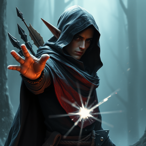 DnD, Male, ranger, fantasy, rugged, tall, muscular, scarred, , sooty, eyepatch, wood elf, woodelf, arab, arabian, bow and arrow, built, archer