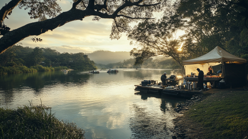 group of people friendship eating sushi at conveyor belt sushi restaurant, a young man grabs sushi plate round off a conveyor belt, chef hand serving red plastic party cup with sushi plate round, KAITEN, A stack of empty sushi plates, over the shoulder view, cinematic photography, High quality, ultra-detailed, 8k, --v 5.1 --style raw