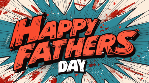 bold comic text with the words"HAPPY FATHERS DAY"ON WHITE --ar 16:9 --v 6.0 --s 50