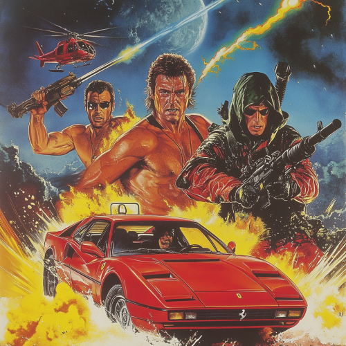 Kurt Russel from 80s poster, fluid scene, poster style --ar 2:3 --v 5.2