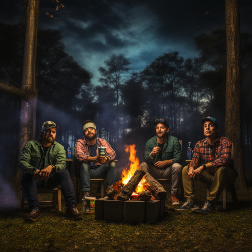 a movie poster of 5 men in their late 20s at the Daniel Boone national Forest