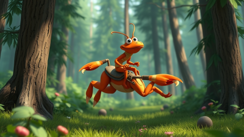 A cute panda, round and fat, with black and white fur, big dark circles under its eyes, wearing blue overalls, talking to a dog in the park, Pixar style, 8K HD --ar 9:16