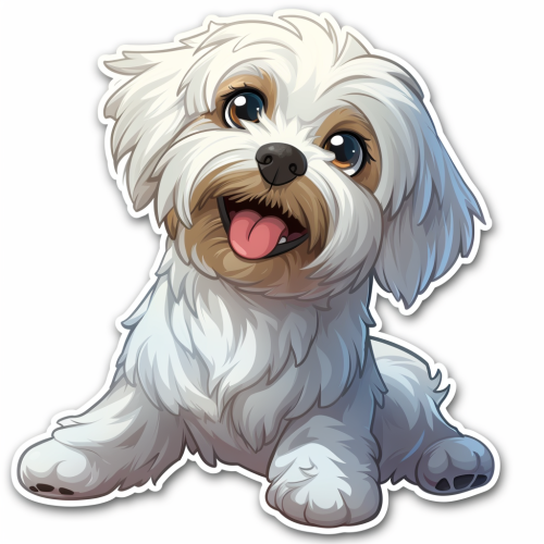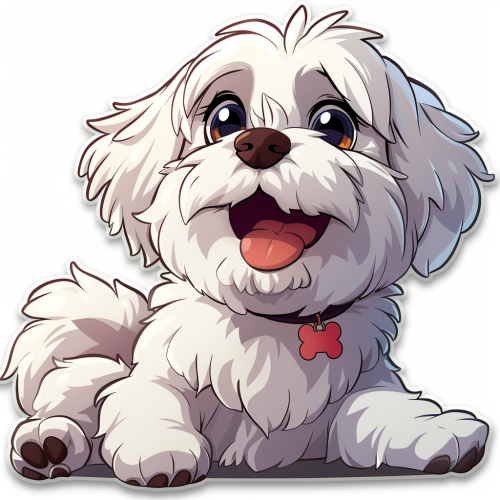 a chibi maltese dog, head tilted, happy face, looking at the camera, sticker, no background --s 750