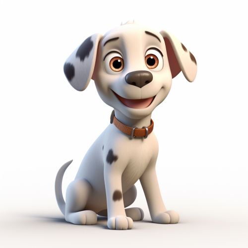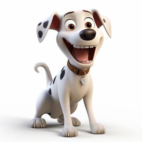 Design a fluffy white American Eskimo dog in the iconic Pixar style. The dog should have a thick, cloud-like coat, with soft, expressive features and bright, intelligent eyes. Capture its friendly and playful personality with a joyful smile and perked-up ears. The fur is pure white with subtle shading to highlight its texture. The pose should show energy and excitement, like standing on its hind legs, wagging its fluffy curled tail. Surround the dog with a colorful, animated background, like a bright green park or a cozy, well-lit home interior.