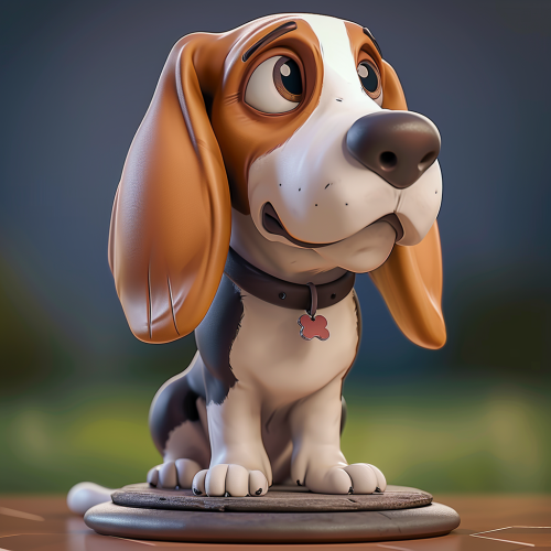 Cute dog Bassett Hound , pixar style, no background, casual style, playrix style, soft shapes, full body, joyfulcartoon 3d character, in the style of realistic hyper-detailed portraits, close-ups, topcor 58mm f/1.4, looking at the camera --v 6.0