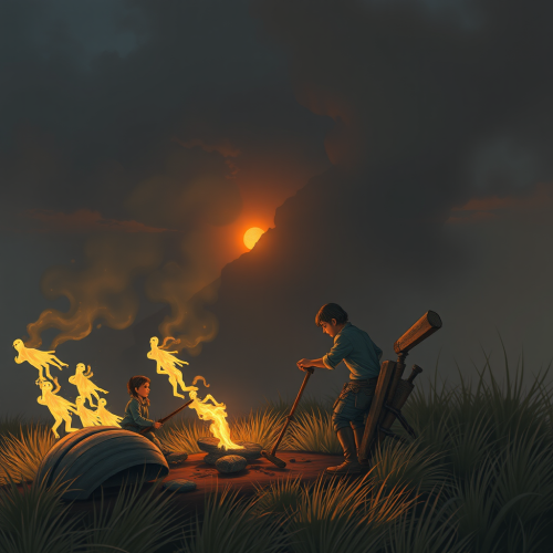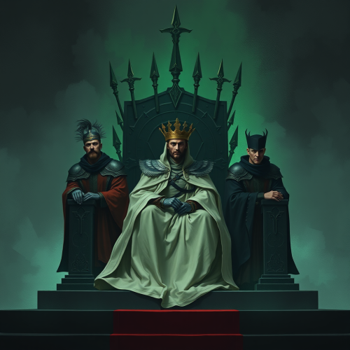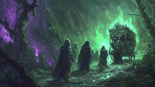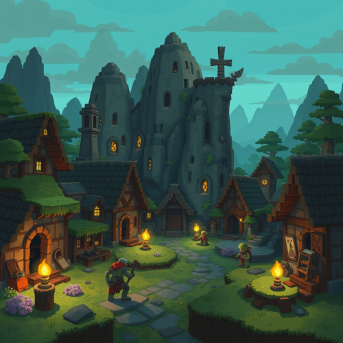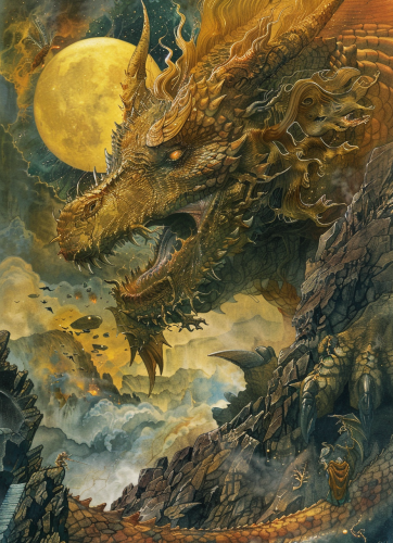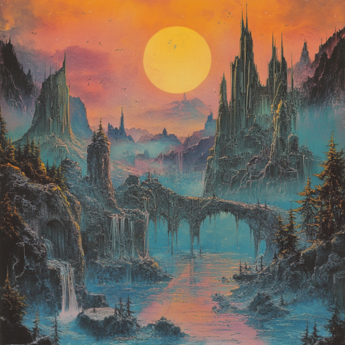 A 1970’s, vintage dark fantasy book cover paper art dungeons and dragons style drawing of a beautiful medieval landscape. Set in a mystical, dark fantasy world --ar 1:1