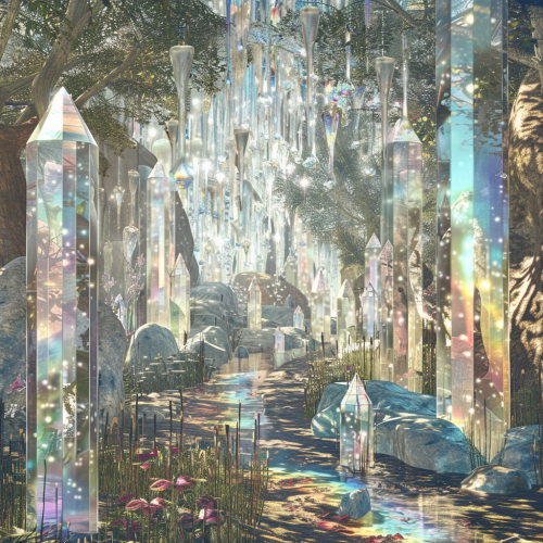 The Crystal Grove: As you step into this ethereal landscape, you find yourself surrounded by towering crystal formations that glitter and refract light in a mesmerizing display. Each crystal is unique, casting rainbows across the landscape as sunlight filters through them. The air is filled with a faint, sweet scent, and delicate chimes tinkle softly in the breeze. Walking through the Crystal Grove feels like stepping into a fairy tale, where every step brings you deeper into a world of wonder and enchantment--ar9:16