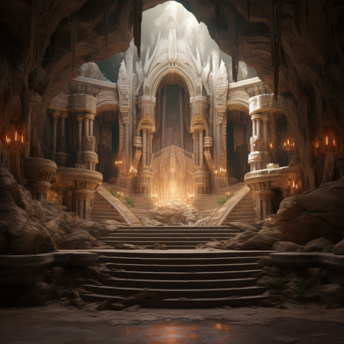 fantasy mogolian moutain ancien underground temple exterior. realistic.