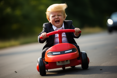 crying trump driving little tikes clown car --ar 3:2 --style raw --s 250
