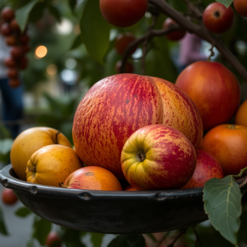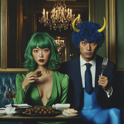 Futuristic Japanese Couple in Spaceship with Fruit