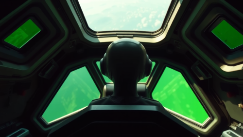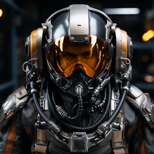 Futuristic pilot of a spaceship in a cockpit. Futuristic helmet, futuristic armor --s 750