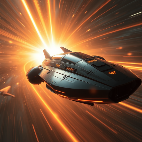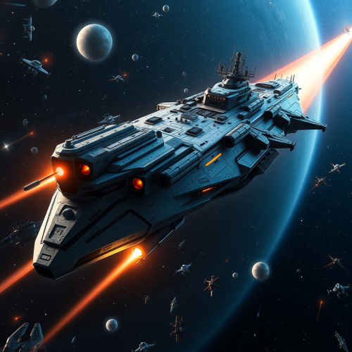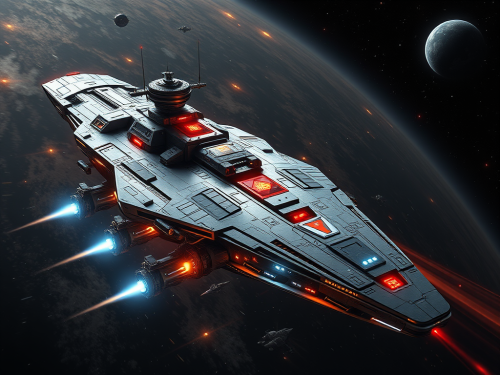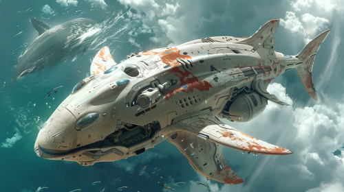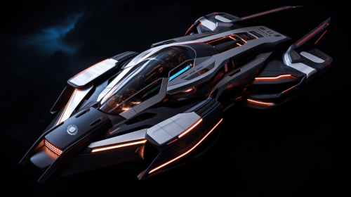 High tech futuristic spaceship with living organism motive, afterburner, floating in space --ar 16:2 --v 5.2