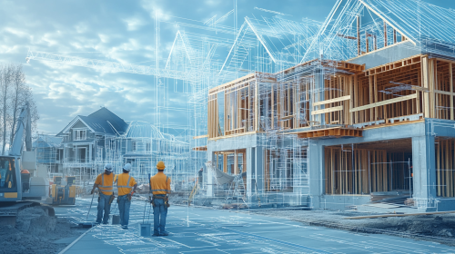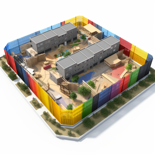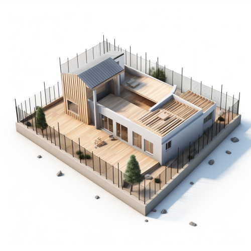 Construction building with 3D modeling, conceptual, temporary fencing construction around site, in the style of creative commons attribution, simple, mechanical design, view from high angle, transparent background --no machinery or people --s 50