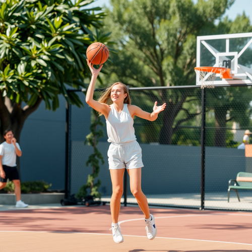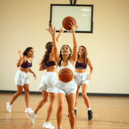 logo of a girl basketball player, flat colors, simple lines, white background, vector, sticker