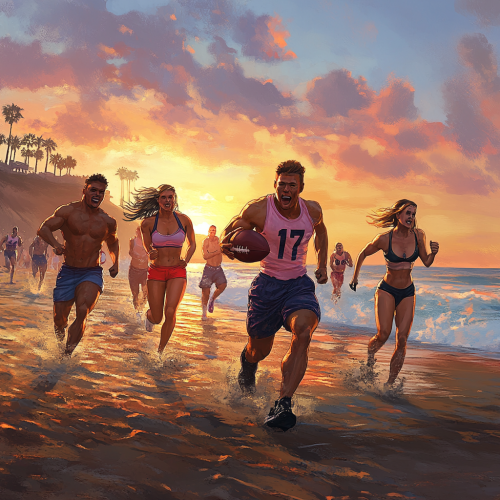 different types of tall beautiful male and female adult extraterrestrials or aliens having fun on a beach, reprilian, lyran, sirian, exotic, extraterristials but no humans, hyper realistic, --no humans