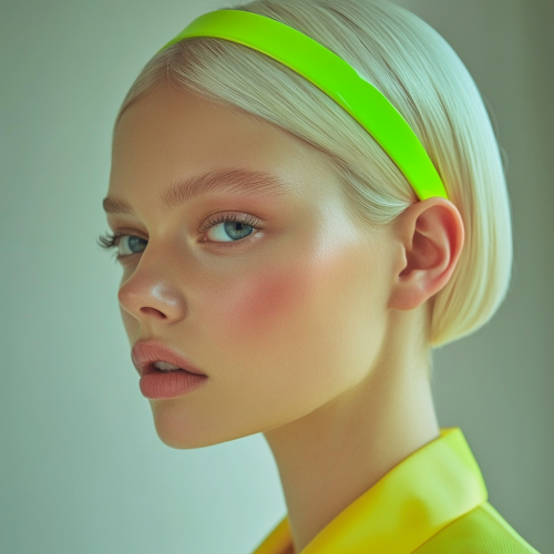 minimal nordic, woman model, hair trends of 2025, sleek and refined hairstyle, Scandinavian aesthetic, minimalist fashion, neon and natural colors, soft lighting, clean lines, modern elements