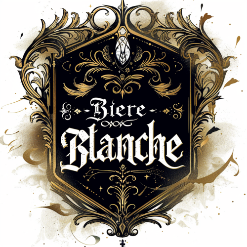 a logo for the wording "Biere Blanche" in the style of kronenbourg 1664 and hoegaarden beer. The logo will be made of a modern gothic font with a fleur de lisse in the background --v 6.0
