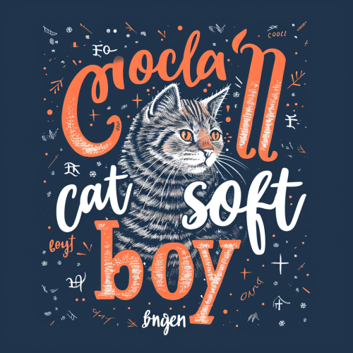 create a lettering consisting of four lines in justified text, with one word per line: first line "cool", second line "cat", third line "soft", fourth line "boy". use the color orange on a navy blue background. --v 6.0