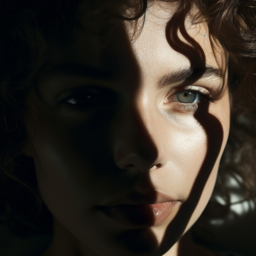 cyber tech film projector device used to shine through subjects eyes. Detailed with creative composition. Film
