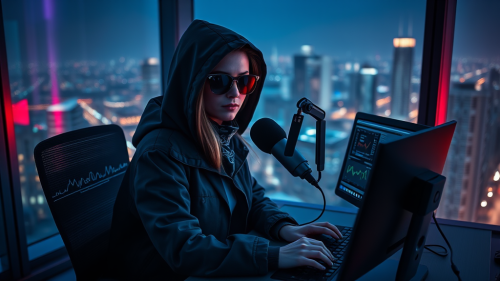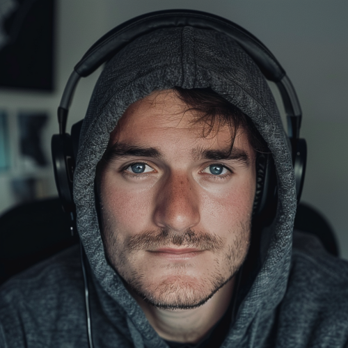 Hooded, Tattooed Person Holding Headphones: Evolution Brand
