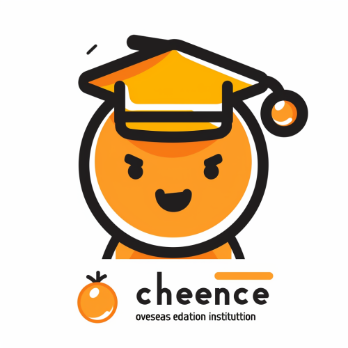 a mascot brand logo for "Chence overseas education institution"featuring the orange shape and doctoral cap, to signify the academic achievement, minimalistic, white background, no outline border color, no shading detail, no text