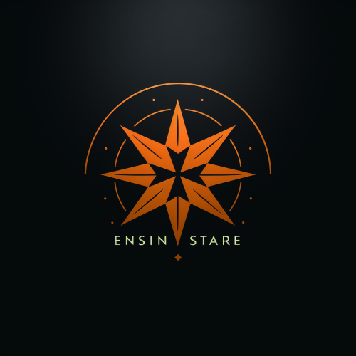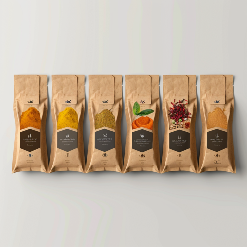 minimalistic Geometric logo dark orange-green on a black background for a spice store