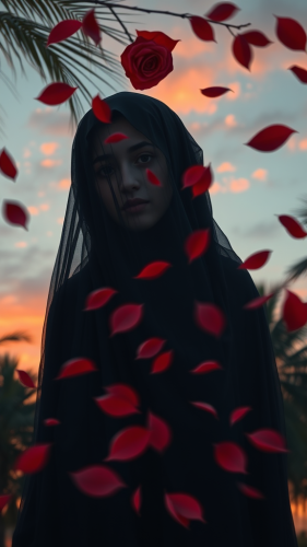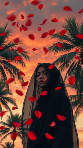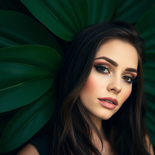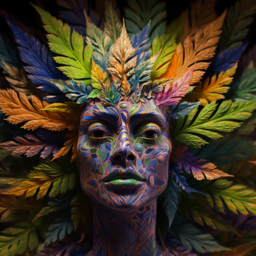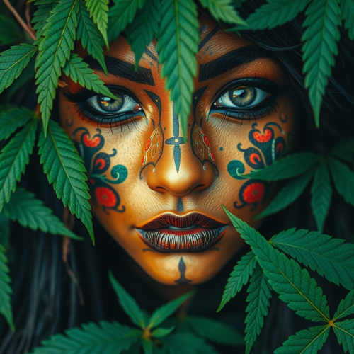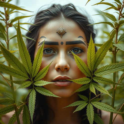 Indigenous Mexican Woman Amidst Trippy Hemp Leaves