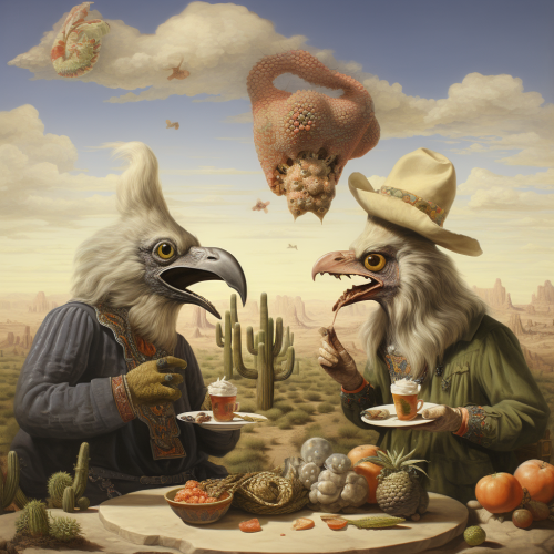indeginous mexicans in mexico dessert, staring at eagle, eating a snake, on a cactus, halftones