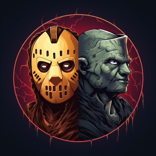 logo for a crypto token of Jason Voorhees vs Freddy Krueger facing each other