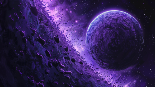 a barren planet covered with craters, saturn as the backdrop, small space ship flying by, --ar 16:9 --v 5