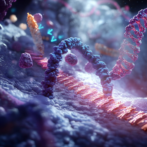Create a detailed and realistic 4K image of the CRISPR/Cas9 gene editing process inside a cell. Show the Cas9 enzyme bound to the single guide RNA (sgRNA) complex, which consists of trans-activating CRISPR RNA (tracrRNA) and CRISPR RNA (crRNA). Illustrate the sgRNA guiding Cas9 to the target DNA sequence, with the protospacer adjacent motif (PAM) sequence visible next to the DNA. Highlight the Cas9 enzyme creating a double-strand break in the DNA. The scene should be depicted in a highly detailed, realistic manner within a cellular environment, emphasizing the interaction between the CRISPR/Cas9 components and the DNA