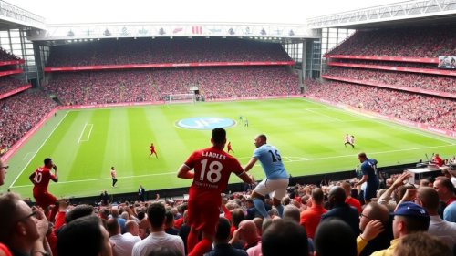 football, wallpaper for desktop, no people in the scene, no ball in the scene, stands visible, spotlights, intensity