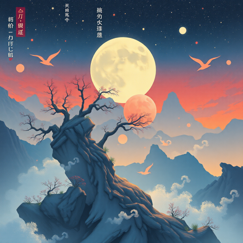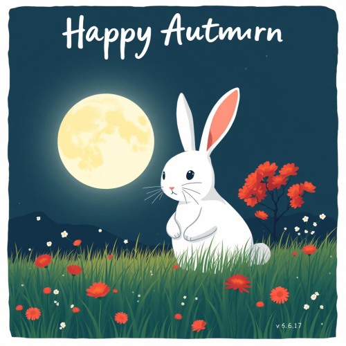 zhongqiu,night,sky,moon,night sky,lantern,east asian architecture,star (sky),outdoors,open mouth,rabbit,paper lantern,tree,smile,starry sky,furry,architecture,full moon,looking at viewer,flag,fireworks,Mountains,water,rivers,reflections,shadows,stone chairs,Tree,flower,table,mooncake table,door,window,eaves, --v 6.0
