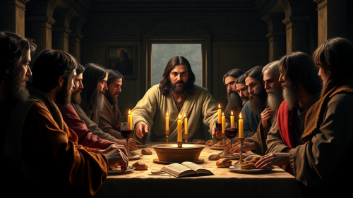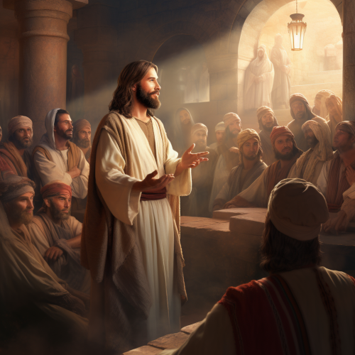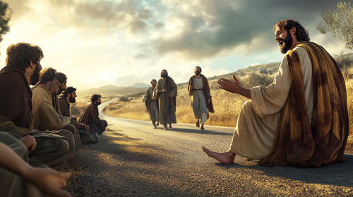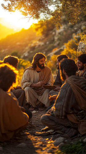 jesus christ comforting and teaching his disciples with emotive eyes, expressive gestures, 4k, ultra realism --ar 9:16