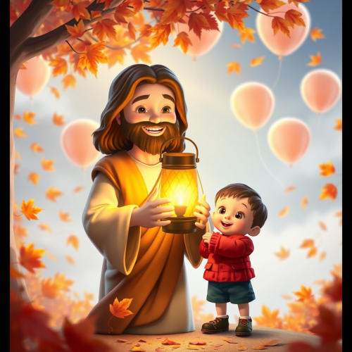Jesus lay in peace on the grass under the tree with his young followers in the garden of heaven --v 6.0