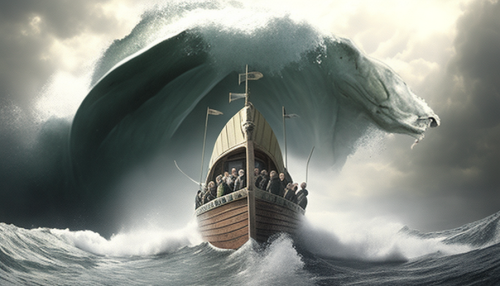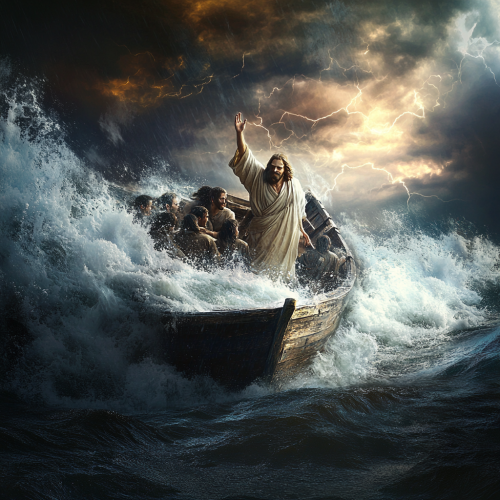 Jesus Calms Storm while Disciples Fear in Boat